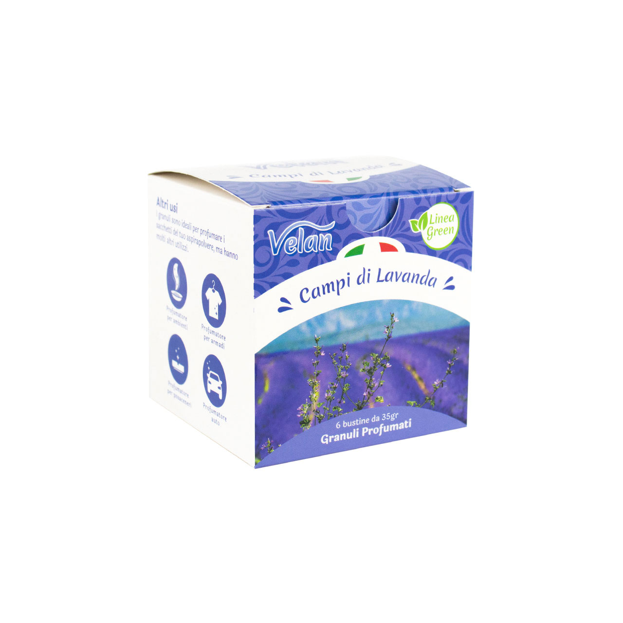 Velan Granuli Profumati Fragranza Campi di Lavanda in scatola da 6 bustine